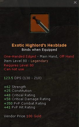 Exotic Highlord’s Hexblade- PvP One Handed Edged