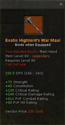 Exotic Highlord’s War Maul –Â PvP Two Handed Blunt