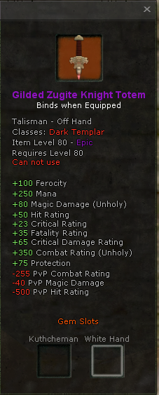 This is the Gilded Zugite Knight Totem , the DT talisman.